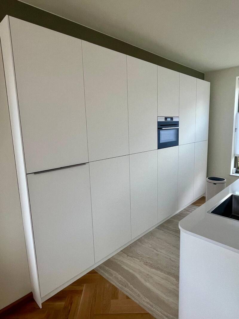 Van A tot Z deze keuken mogen produceren, monteren incl. alle bijbehorende apparatuur. De keuken is uitgevoerd in kristal/wit, extreme mat primeboard.